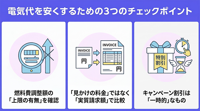 チェック②:「見かけの料金」ではなく「実質請求額」で比較